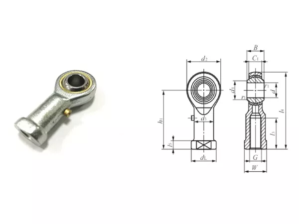 桿端軸承分為嵌入式給油型,均為自動調心球面滑動軸承,能同時承受高徑向負荷及兩個方向之軸向負荷。給油型為嵌入之球面內輪於銅合金襯套表面滑動,與外表經鍍鋅之主體組合而成,且主體有油嘴可進行重潤於球面表面來完成給油。 。