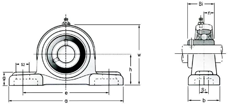 軸心直徑d | h | a | e | b | S1 | S2 | g | w | Bi | n | 螺絲尺寸 | |