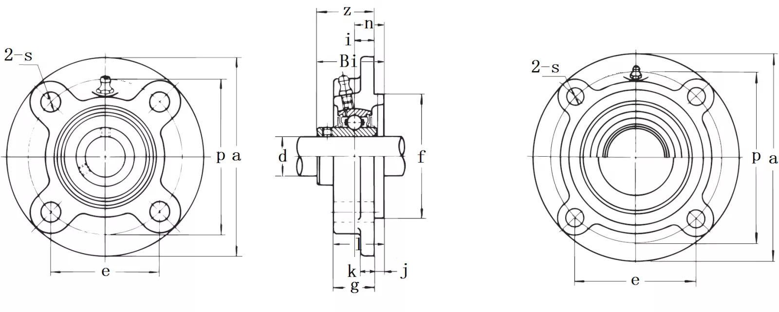 | 軸心直徑 | a | p | e | i | l | s | j | k | g | f | z | Bi | n | 螺絲尺寸 | |